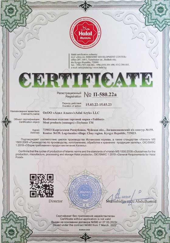 “Тойбосс” компаниясынын 3 адал сертификаты бар: